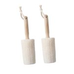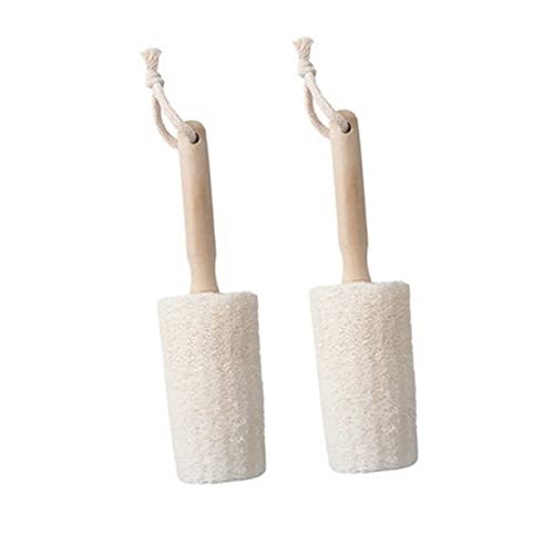 Healvian木製ハンドルの天然ヘチマブラシは、全身用のバスボディクリーナーで、背中ケアにも最適。保湿を促進し、入浴時のスクラブにぴったりな2個セット!