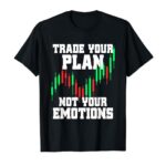 トレーディングの心構えを示す「Trade Your Plan Not Your Emotions」Tシャツ。株式・証券取引所を愛する投資家にぴったり。スタイリッシュで実用的、トレーダーの必須アイテムです。
