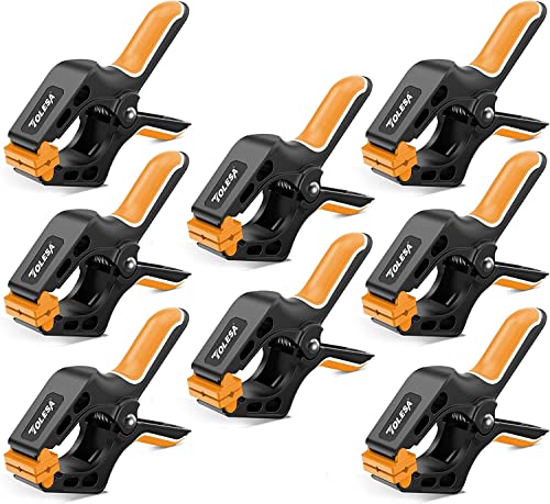 TOLESAスプリングクランプ46mm×8は、高強度ナイロン製で、強力な圧着力を持つDIY工具です。木工作業や撮影用の固定に最適で、8点セットで便利に使用できます。
