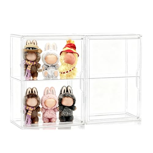 2個セットのフィギュアケースは、36cmの2段式で透明なアクリル製。可動棚付きでマグネット扉を採用し、防塵効果も抜群。卓上や壁掛けにも対応し、Labubuの盲盒やアクスタ、ぬいぐるみを美しく展示できます。