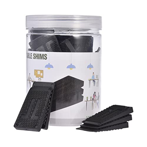 Dulcicasaのラバーテーブルシムは、耐荷重22000ポンドで、36個セットのブラックゴム製。溝付きウェッジ設計により滑り止め効果があり、家具の平らな調整に最適です。多用途のインテリア水平器として活用できます。