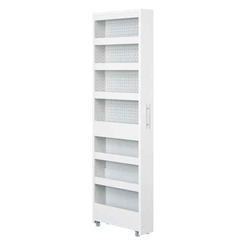 白井産業の隙間収納ストッカーは、幅15cm・高さ181cmの slim design で、ホワイトまたはグレー展開。キャスター付きで移動も簡単、シンプルなキッチン収納に最適です。