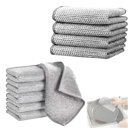 TANGRUlのメタルファイバークロスは、油汚れを強力に洗浄し、両面使用可能。再利用できる吸水速乾性の高いキッチン用ふきんです。10枚入り。