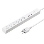 サンワサプライ スリムタップ TAP-SLIM6UC-15Wは、AC6個口、USB A1+C1ポートを搭載し、合計33Wの電力供給が可能です。長さ1.5mのコードを持ち、ホワイトのデザインで、シンプルで使いやすいです。