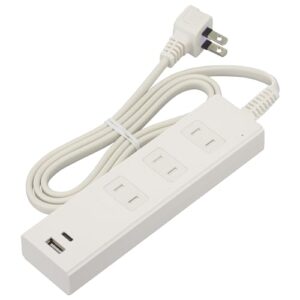 オーム電機 電源タップ 3個口 雷ガード 急速充電 PD対応Type-C/Type-Aポート付き 1m ホワイト HS-TKU31PD23-W 00-1005 OHM