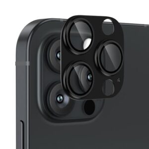 Podick レンズカバー iPhone 15Pro/15 Pro Max 用 カメラフィルム アルミ合金製 9H強化ガラス 傷防止 レンズ保護 耐衝撃 アイフォン15プロ/15プロマックス 用 カメラ保護 高透過率 黒縁取り 露出オーバー防止 カメラレンズプロテクター ブラック