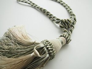 このカーテンタッセルはロングタイプの2本入りで、レーヨン房付きのミントグリーン色です。大きいカーテンに最適で、おしゃれかつシンプルなデザインが特徴。豪華で大人のインテリア雑貨としても魅力的な、日本製のカーテン小物です。