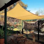 Homemeの日除けシェードは、屋外用オーニングでUVカット、通気性が良く、水が溜まらず、防塵や落葉防止にも対応。また、取付金具とロープが付属しており、設置も簡単です。ベージュ色でおしゃれなデザインです。