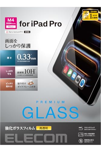 エレコムのiPad Pro 11インチ用ガラスフィルム(M4モデル対応)は、貼りやすく、貼り直し可能。指紋防止機能付きの強化ガラスで、ガイド枠が付いています。