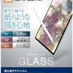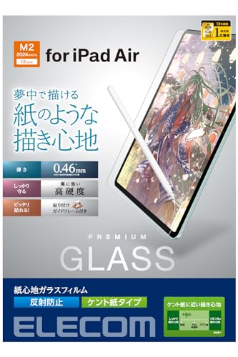 エレコムのiPad Air 13インチ用フィルムは、ペーパーテクスチャーの反射防止アンチグレアタイプ。ガイド枠付きで貼りやすく、貼り直しも可能です。