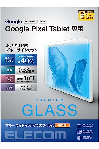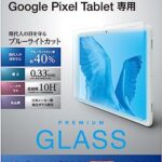 エレコムのGoogle Pixel Tablet用ガラスフィルムは、ブルーライトカット機能を搭載し、超透明な仕様で視認性を損なわず、指紋が付きにくい加工が施されています。