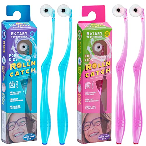 Roll’n Catch 360度回転式歯ブラシは、大人用と子供用が各1本、計4本。やわらかめで歯周ケア、矯正歯科用。舌ブラシとしても使用可。360度の極細ブラシが特徴。