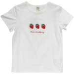 ビーの半袖プリントTシャツは、男女共用のキッズ向け商品です。綿100%のストロベリー×ホワイトデザインで、春夏に最適です。サイズは120cm。