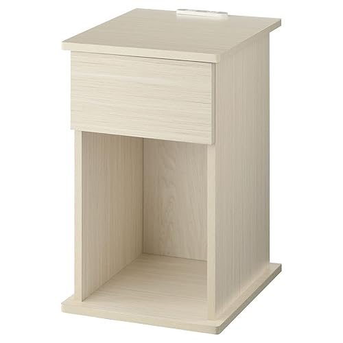 ぼん家具のサイドテーブルは、コンセント付きでベッドサイドやナイトテーブルとして最適。コンパクトな設計でルーターも収納可能。オープンタイプのホワイト仕上げ。お客様組み立てが必要です。