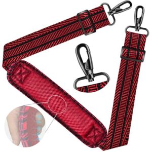 ZINZ ショルダーストラップ59インチ ユニバーサルバッグストラップ 超厚手固定通気性パッド付き 調節可能で丈夫なショルダーストラップ ノートパソコンバッグ クロスボディ ジムバッグ カメラバッグなどに – ブラック レッド ジャカード