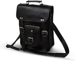 11インチのスモールレザーメッセンジャーバッグショルダーバッグ、クロスボディヴィンテージメッセンジャーバッグ、レディース&メンズサッチェルマンバッグ、iPadとタブレットに対応 ブラック, ブラック///ホワイト, S, レトロ