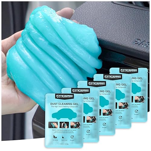 TICARVEジェルクリーナーは、90gのスライムが5袋入りで、隙間のホコリを簡単に取り除けます。車内清掃や汚れ落としに最適で、手にべたつかず繰り返し使えます。