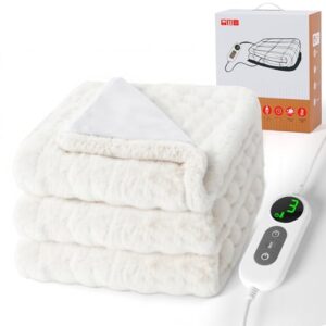 電気毛布 190×130cm 大判 掛け敷き兼用 ひざ掛け 「シリコンボタン付きコントローラー」 10段階温度調整 12段階タイマー設定機能 自動オフ 洗える 電気ブランケット ダニ退治 ふわふわ 柔らかく 防寒対策 暖房器具 省エネ 安全保護 (ホワイト, 190*130)
