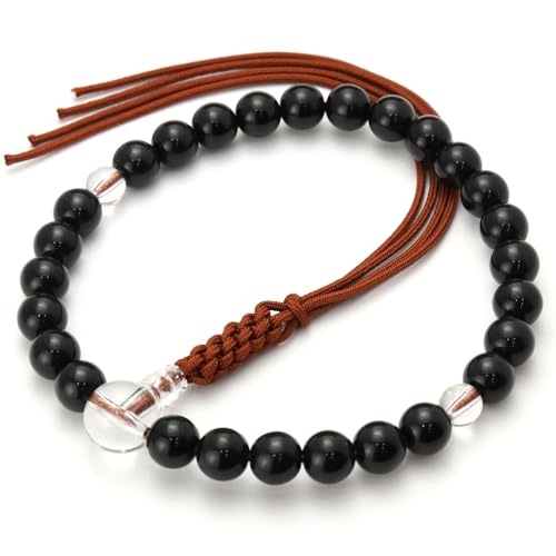 男女兼用の京念珠(数珠)で、黒檀風オニキス調のアクリル製、27玉の紐房付き。すべての宗派に対応し、葬式や法事に最適。ギフトにもおすすめの日本製です。