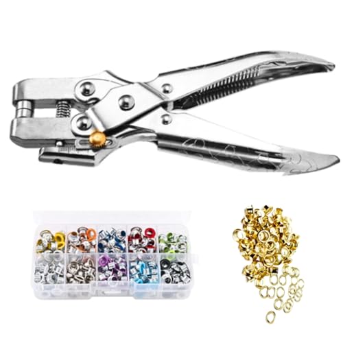Dazzlestarのハトメパンチは、炭素鋼製の穴あけ工具で、穴径は4.5mm。400個のアイレット付きで、革細工やDIY手作りに最適です。家庭用の小物作りに便利な製品です。