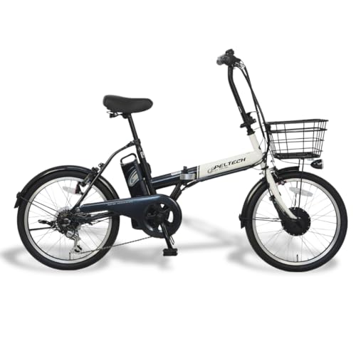 PELTECHの折り畳み電動アシスト自転車は、20インチのコンパクトサイズで外装6段変速を搭載。ライフスタイルに合わせて簡易組立可能。8AHバッテリー搭載で、ホワイト×ブラックのシンプルなデザイン。