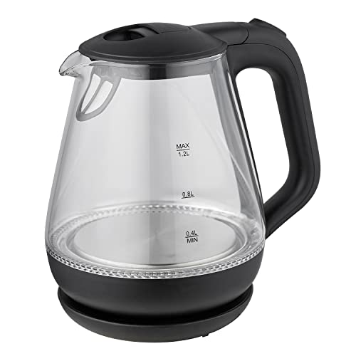 東京Decoの電気ケトルは1.2Lのブラックガラス製で、LEDライト付き。空焚き防止機能と耐熱強化ガラスを採用し、800Wの出力で素早く湯沸かし。おしゃれで便利なキッチン家電です。