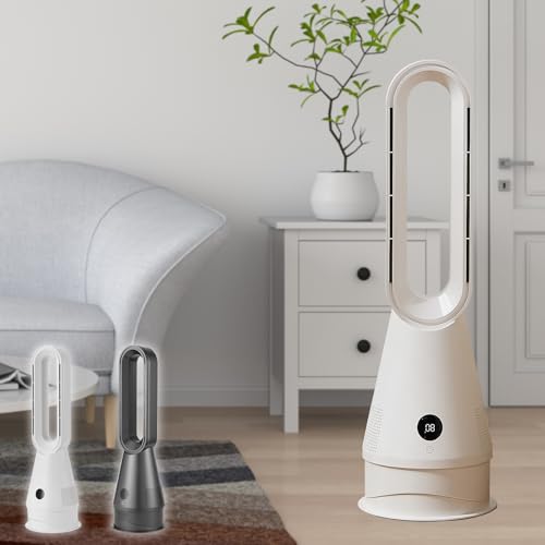 SKKのタワーファンは、冷暖切替が可能で羽根なしデザイン。首振り80度、8段階の送風と3段階の温風モードがあり、切タイマーとおやすみモード付き。リモコン操作とDCモーター採用で静音性も高い。
