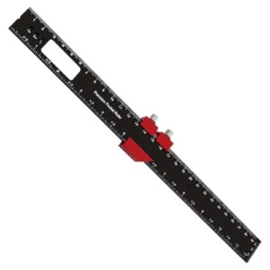 完全スコヤは、20cmのアルミ製直角定規で、黒色に白目盛があります。台付スコヤとして便利で、高精度の木工測定ツールです。L型デザインで、大工や木工に最適なケガキ工具です。