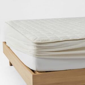 Atokazo あったか パッド一体型ボックスシーツ 冬 秋冬用 1枚両得 極暖 吸湿発熱 抗菌・防臭加工 TEIJIN中綿 マイクロファイバー 丸洗い 敷きパッド ベットパッド マットレスパッド(シングル・100X200cm, アイボリー)
