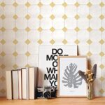壁紙屋本舗のHatte meリメイクシートは、タイル柄のシールタイプで、巾65cm × 1m。キッチンに最適な防水仕様で賃貸リフォームにぴったり。テラコッタダイヤ柄のアクセントで、明るいイエローが特徴。受注生産品でキャンセル不可。