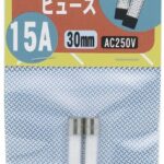 エルパの消弧剤ヒューズ15Aは、2個入りで定格電圧250V、定格遮断電流10,000Aに対応。サイズは15A、30mm、φ6.35のコンパクトな設計です。