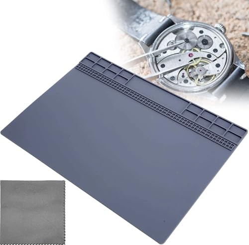 TICFROG腕時計修理マットは耐熱シリコン製で、1500°Fの耐熱性を持ち、スケール定規やネジ位置が印刷されています。はんだ付け作業にも適したデザインの時計修理用マットです。