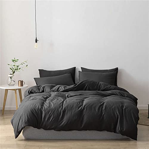 Treeflyheartの寝具カバーセットは、クイーンサイズの4点セットで、ブラックの無地デザインです。掛け布団カバー、シーツ、ボックスシーツ、枕カバーが含まれ、洗い替えや速乾性、防ダニ機能が特徴です。
