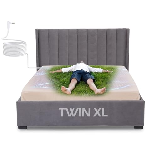 ぴったりフィット アースシートは、睡眠を改善する接地ブランケットです。導電性パッドがシルバーファイバーで作られ、アースケーブル付き。ベージュ色、サイズはツインXL(39インチx80インチx15インチ)です。