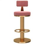 回転スツールは、背もたれ付きで快適な座り心地を提供します。ベルベット生地のシートとゴールドフレームが高級感を演出。高さ調節可能で、キッチンやレセプションに最適なアイテムです。