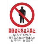 光(Hikari) サインプレートは、多国語対応のピクトサインで「関係者以外立入禁止」と表記。アクリルマット仕上げで、テープ付き。サイズは300x200x2mmで、設置が容易です。