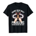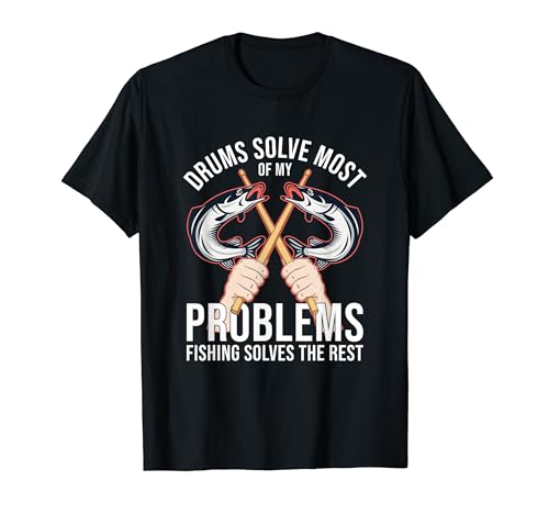 アングラードラマー向けのドラムプレーヤー用Tシャツ。フィッシングデザインが特徴的で、個性的なパーカッション愛好者にぴったりな一品。