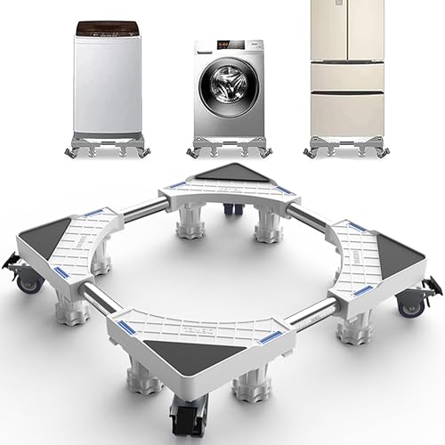 DEWEL洗濯機台は新双輪8足で耐加重500kg、伸縮式45-70CM。目盛り付きキャスターとジャッキがあり、簡単に組み立て可能。冷蔵庫台としても使用でき、日本語取扱説明書付きで3年保証あり。