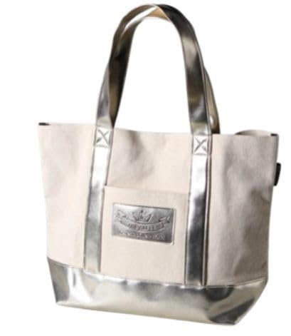 THE ALFEEの「天地創造 2022 Spring Tour Genesis of New World」グッズ、ゴールドトートバッグ。高品質な素材を使用し、大容量で使いやすいデザイン。ファン必見のアイテムです。