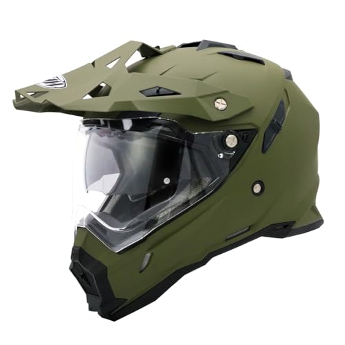 THH フルフェイスヘルメット TX-28は、マットオリーブグリーンカラーでインナーサンバイザーを搭載したオフロードモデルです。PinLock対応シールド装備、SG規格認定、全排気量対応、サイズはXXL(63~64cm未満)。