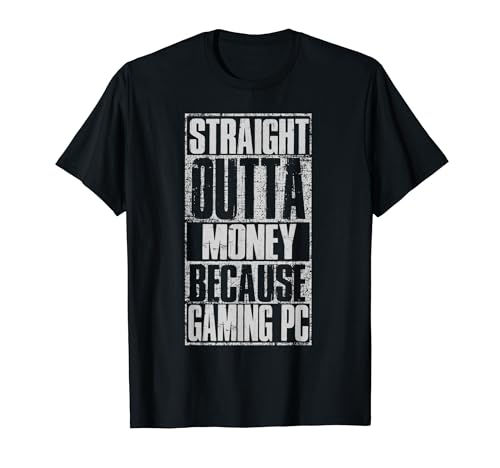 Straight Outta Money Because Gaming PC Tシャツは、ゲーム愛好者にぴったりのユニークなデザイン。快適な着心地で、友達とのゲーミングナイトに最適!