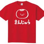 サモエスキーのまんじゅうデザイン半袖Tシャツは、ユニークな筆絵イラストが特徴。スイーツ好きにぴったりのレッドカラー、Lサイズ。カジュアルなコーディネートにおすすめです。