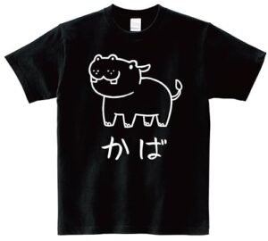 [サモエスキー] かば カバ 河馬 動物 イラスト おもしろ Tシャツ 半袖 ブラック M
