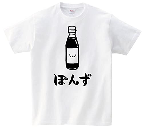 サモエスキーのぽんずポン酢デザインのTシャツ。半袖ホワイトLサイズで、ユニークな筆絵イラストが特徴。おもしろい調味料好きにぴったりなアイテム。