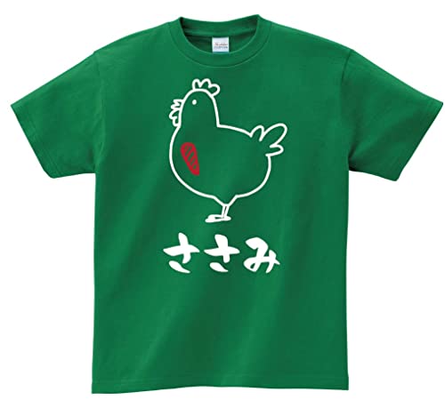 サモエスキーのささみデザインTシャツは、焼鳥好き必見の面白いイラストが特長。素材は柔らかく、着心地も抜群。半袖で、グリーンのカラーが爽やか。サイズはMで普段着にも最適。
