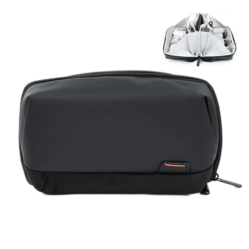 Travel Inspiraのガジェットポーチは、旅行や出張に最適な収納ケース。撥水加工され、ケーブルや充電器、マウスなどをしっかり収納できる大容量設計。シンプルなブラックカラーでスタイリッシュです。