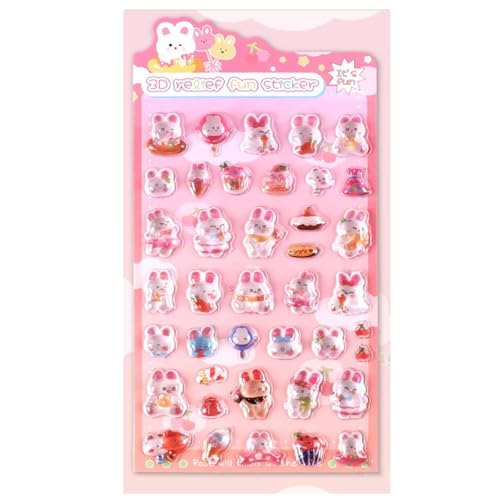 キャンディウサギの3D立体ごほうびシール。可愛いデザインで、手帳や日記帳、携帯電話のデコレーションに最適。キラキラした仕上げが女の子に人気のDIY用シールです。