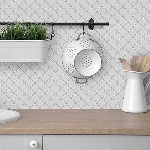 remecleのタイルシールは、3D立体デザインのホワイトモロッカンで、耐熱・防水仕様。25cmx25cmサイズの20枚セット。キッチンや洗面所に最適な防汚リフォームシートです。
