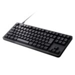 エレコムのメカニカルキーボードLeggeroは、有線でテンキーレスデザイン。Nキーロールオーバー対応、5000万回高耐久スイッチ採用の赤軸モデル。カラーはブラック。