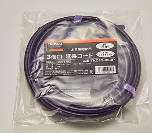 トラスコ中山(TRUSCO)の3個口延長コード、バイオレットカラーで長さは5m。安全性を考慮した設計で、家庭やオフィスでの電源確保に便利です。